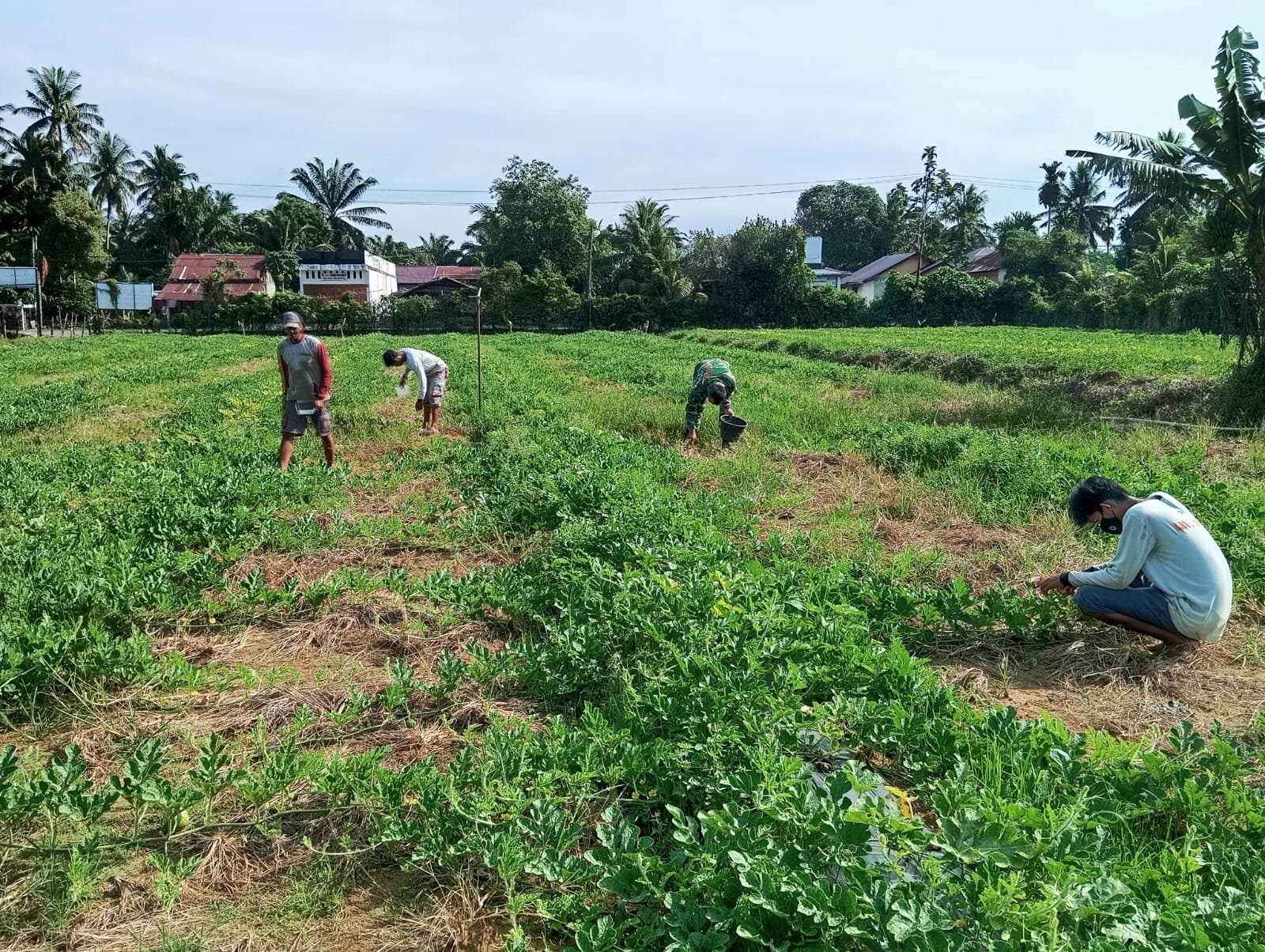 Di Kecamatan Woyla, pembangunan tak berhenti pada batu dan semen. Di hamparan lima hektar, jagung berdiri tegak, semangka mulai merambat, cabai merah tumbuh berani. Semua dirawat bersama, seakan tanah pun merasakan semangat kebersamaan.