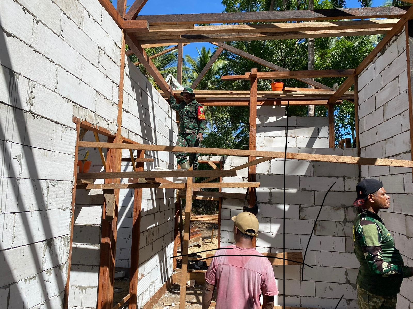 Pembangunan rumah tersebut merupakan salah satu sasaran fisik TMMD yang bertujuan meningkatkan kualitas hunian masyarakat. Personel Satgas bersama warga bekerja secara bertahap mulai dari persiapan pondasi hingga penyusunan struktur bangunan.