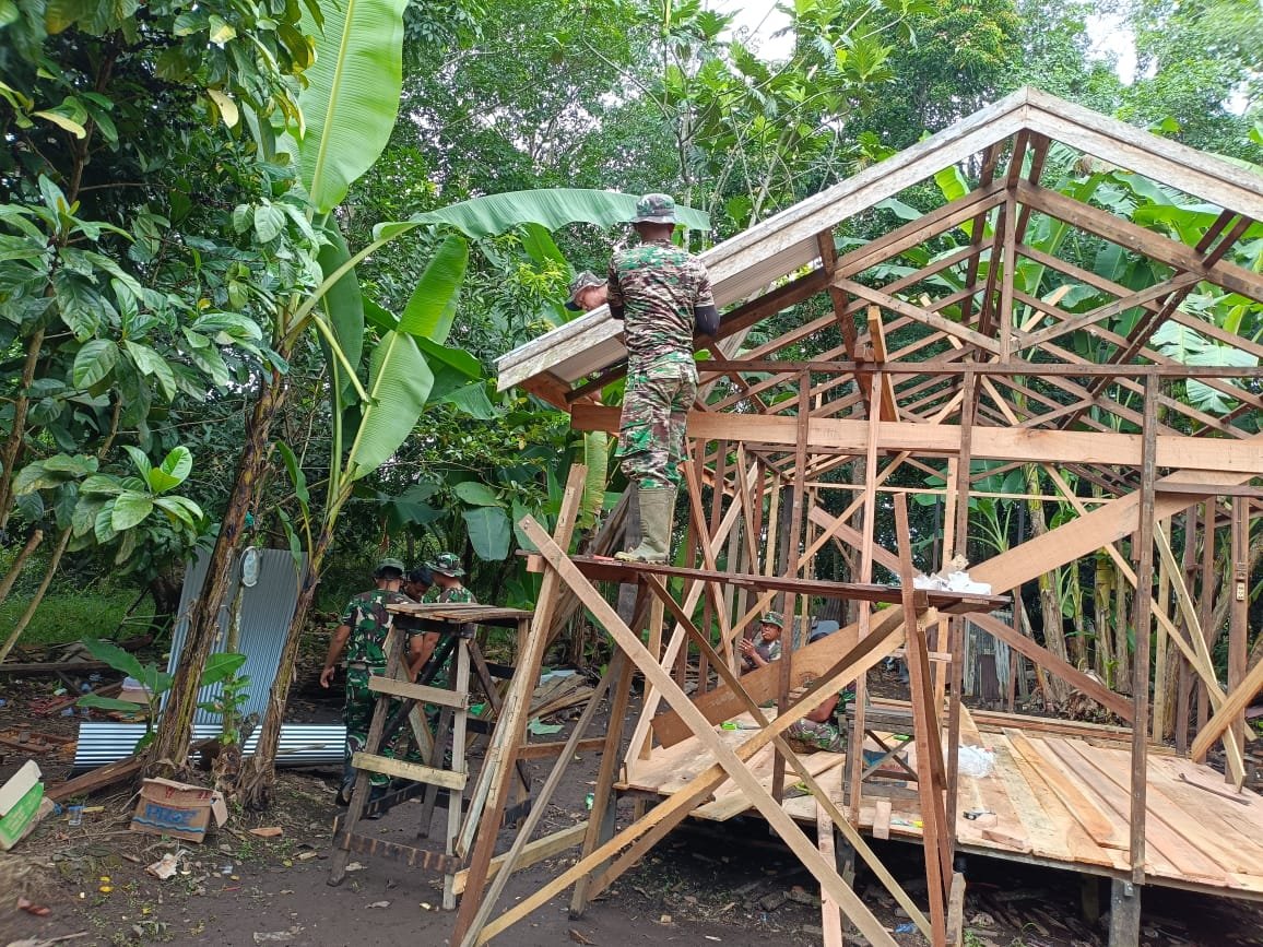 Pekerjaan pemasangan atap dilakukan secara gotong royong, melibatkan anggota satgas dan warga setempat. Aktivitas ini tidak hanya mempercepat pembangunan, tetapi juga menjadi momen interaksi sosial yang menguatkan tali persaudaraan antarwarga. “Melihat seluruh proses ini, saya merasa rumah saya tidak hanya diperbaiki secara fisik, tetapi juga hati saya dipenuhi rasa bahagia dan harapan baru,” kata Kai Zaini.