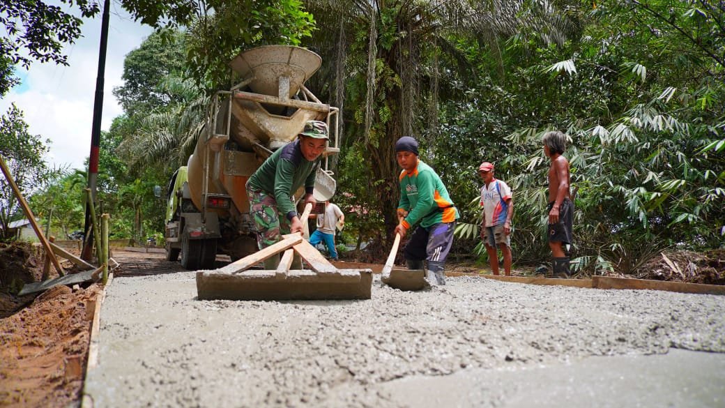 Tarakan – Program Tentara Manunggal Membangun Desa (TMMD) ke-123 Kodim 0907/Trk di RT.16, Kelurahan Karang Harapan, semakin memperkokoh semangat gotong royong di tengah masyarakat. Warga bersama anggota Satgas TMMD bahu-membahu mempercepat pengerjaan sasaran fisik, salah satunya semenisasi jalan, pada Rabu (5/3/2025).