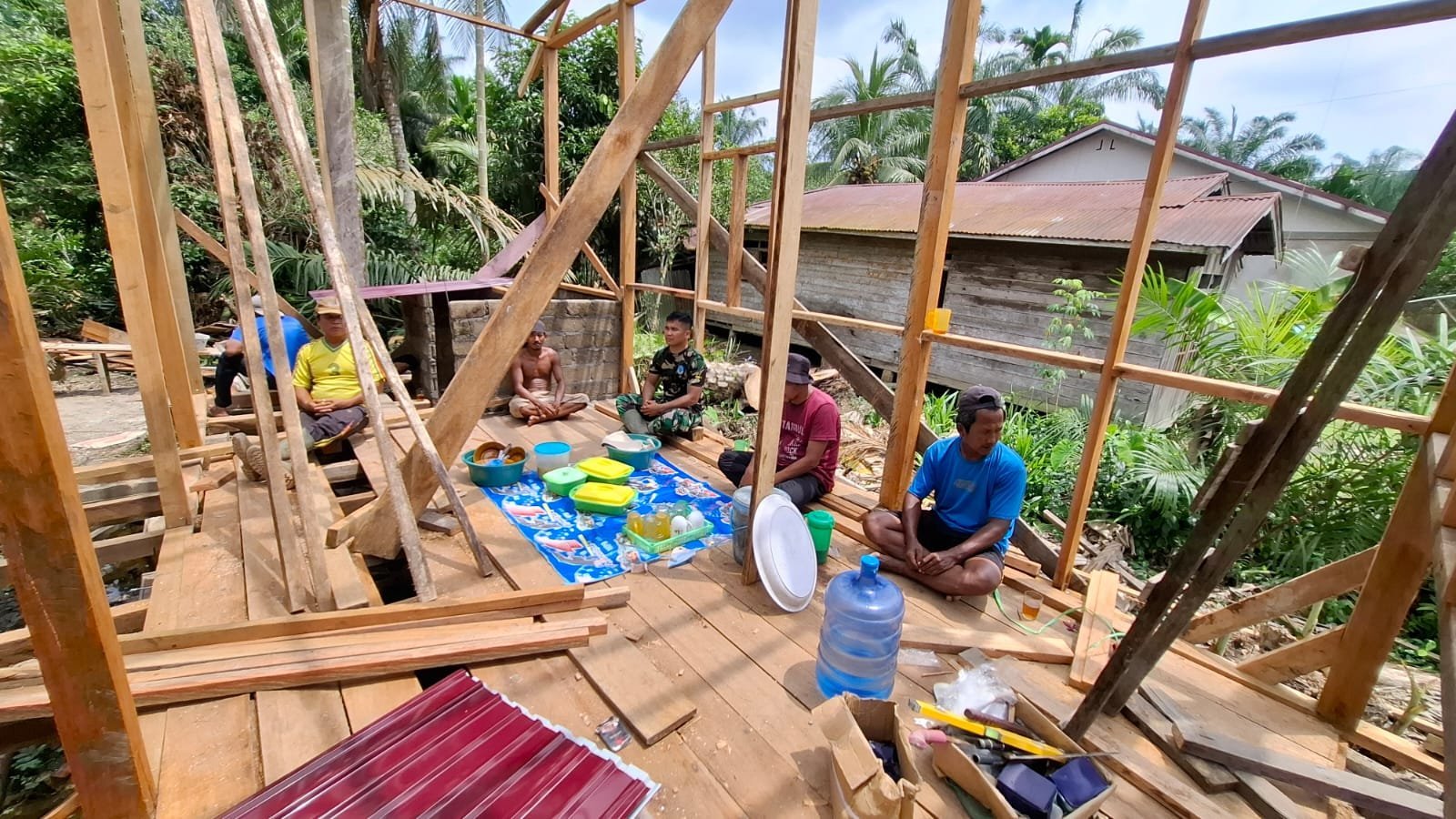 Di setiap sudut lokasi TMMD, suasana kekeluargaan begitu terasa. Tanpa memandang pangkat atau status, anggota TNI dan masyarakat bekerja berdampingan—mulai dari mengangkat bahan bangunan hingga menyusun bata. Tak hanya itu, kebersamaan juga tercermin dalam kehidupan sehari-hari, terutama saat mereka duduk bersama menikmati makan siang di sela-sela pekerjaan, menciptakan suasana yang lebih dari sekadar rekan kerja, tetapi layaknya keluarga.