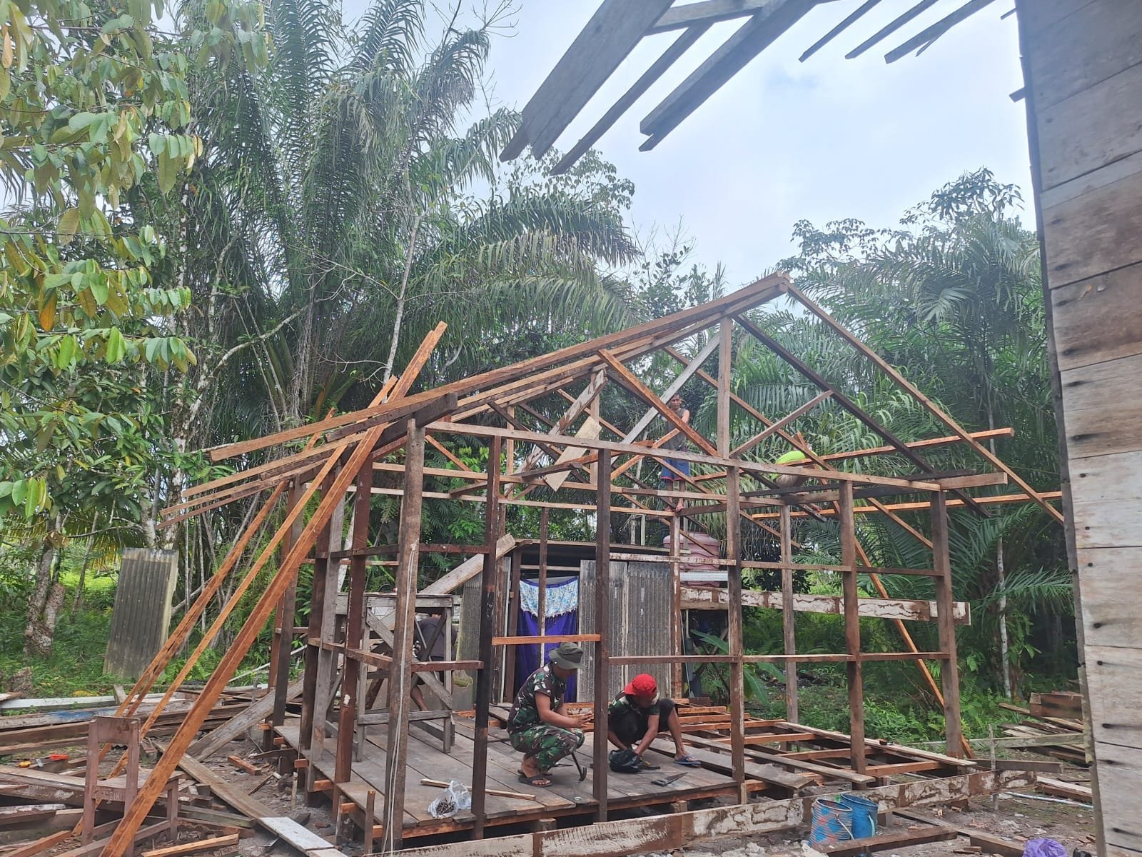 Barito Selatan – Pembangunan Rumah Tidak Layak Huni (RTLH) yang merupakan salah satu sasaran tambahan dalam program TMMD Ke-124 Kodim 1012/Buntok kini memasuki tahap lanjutan. Di lokasi sasaran ke-2 yang terletak di Desa Wungkur Baru, Kecamatan Gunung Bintang Awai, kerangka rumah telah berhasil didirikan dengan konstruksi yang stabil dan rapi.