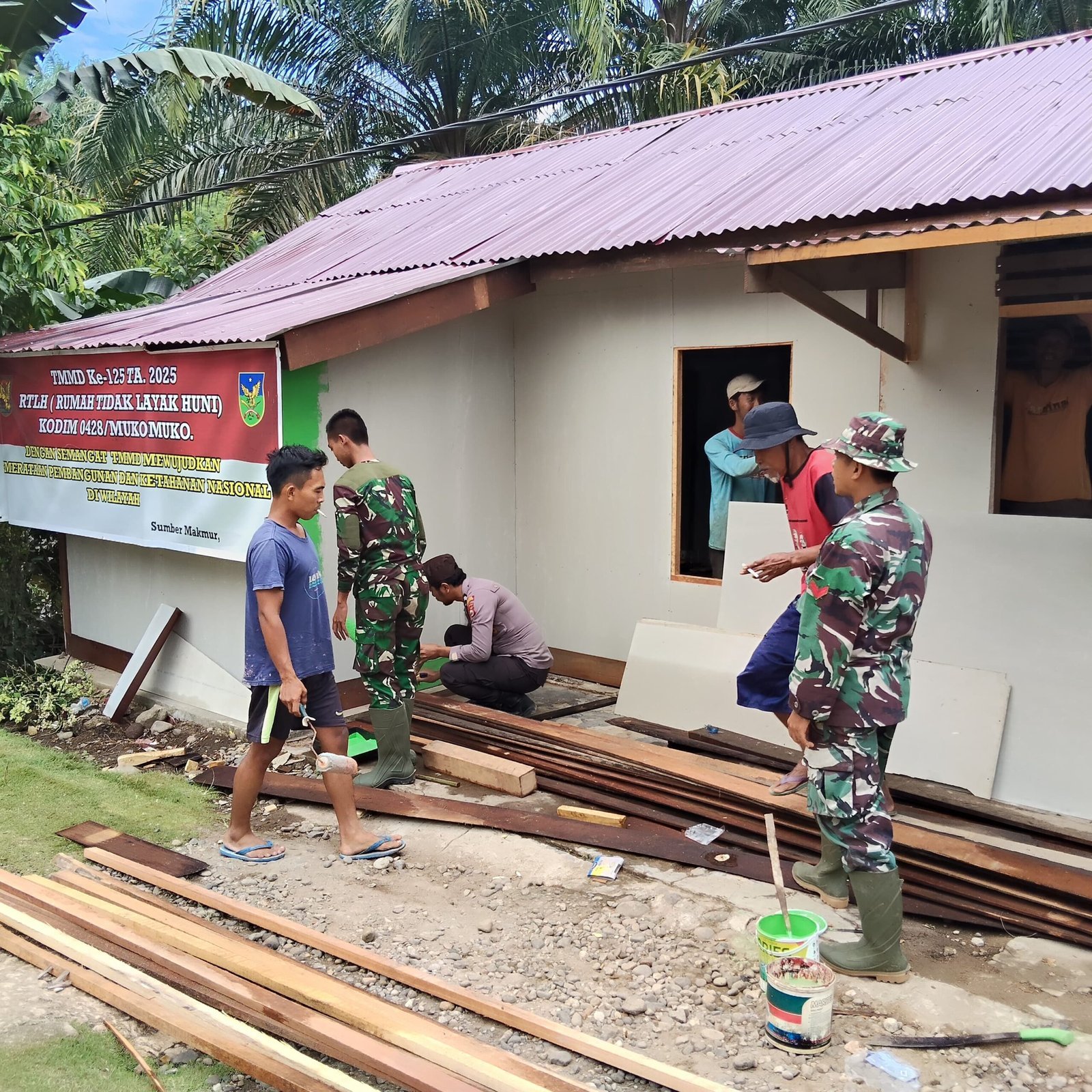 Mukomuko, 11 Agustus 2025 – Memasuki hari ke-20 pelaksanaan TNI Manunggal Membangun Desa (TMMD) Reguler Ke-125, Satuan Tugas (Satgas) Kodim 0428/Mukomuko terus melanjutkan progres pembangunan Rumah Tidak Layak Huni (RTLH) di Desa Sumber Makmur SP 8, Kecamatan Lubuk Pinang. Kegiatan kali ini difokuskan pada pemasangan rangka GRC dan perapian papan, sebagai bagian penting dari penyelesaian struktur bangunan.