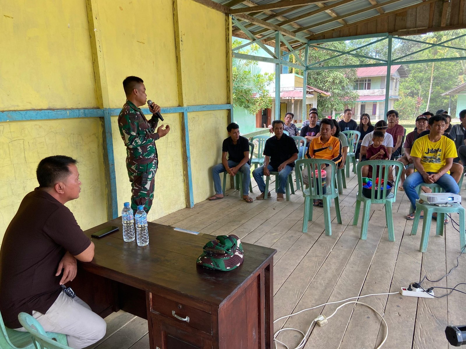 Sintang – Di tengah kesibukan membangun infrastruktur desa dalam program TNI Manunggal Membangun Desa (TMMD) ke-125, Satgas TMMD Kodim 1205/Sintang juga tak melupakan pembangunan sisi nonfisik. Salah satunya adalah penyuluhan tentang wawasan kebangsaan yang disampaikan oleh Letda Arm Firnaldi H Lubis