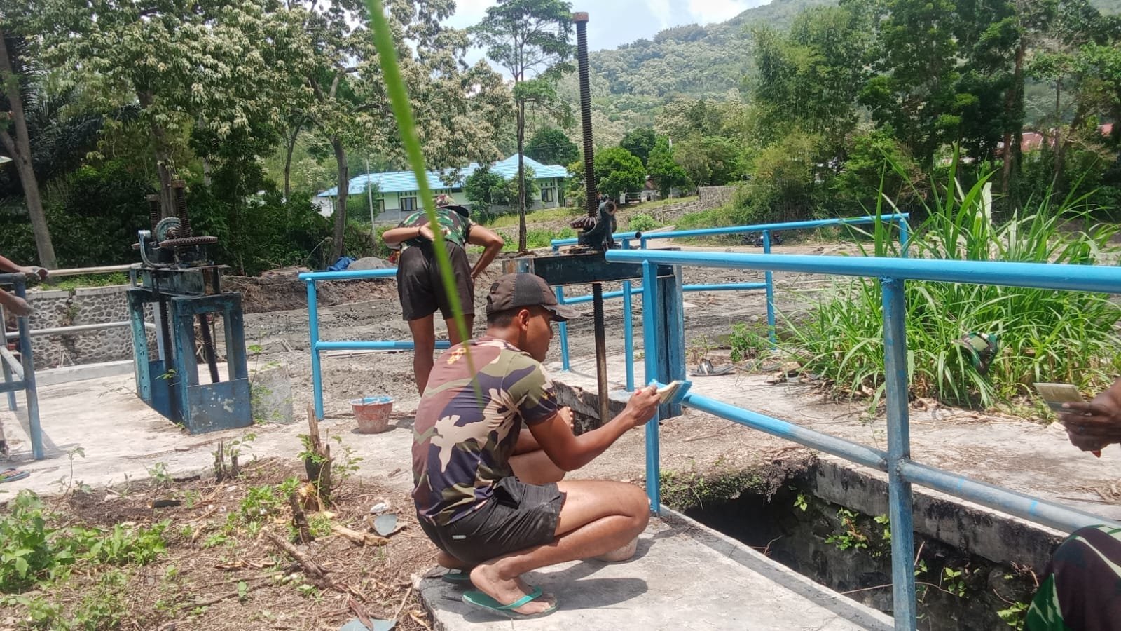 Ngada, 30/10/2025— Program TNI Manunggal Membangun Desa (TMMD) ke-126 Kodim 1625/Ngada terus menunjukkan progres signifikan. Satgas TMMD bersama masyarakat melaksanakan pekerjaan plester pintu dan pengecatan pintu bendungan di lokasi Rehab dan Rehabilitasi Bendungan Panondiwal, Desa Benteng Tawa, Kecamatan Riung Barat, Kabupaten Ngada.