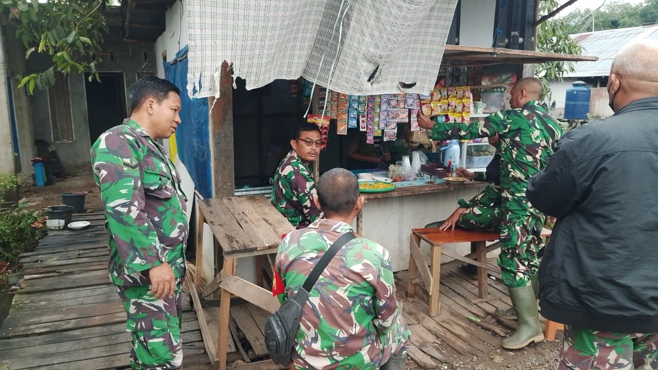 Pada kesempatan istirahat siang, anggota satgas tidak hanya beristirahat, tetapi juga memanfaatkan waktu untuk berinteraksi dengan pedagang lokal. Pertemuan sederhana ini menjadi momen untuk saling mengenal dan membangun ikatan kekeluargaan antara TNI dan masyarakat setempat.