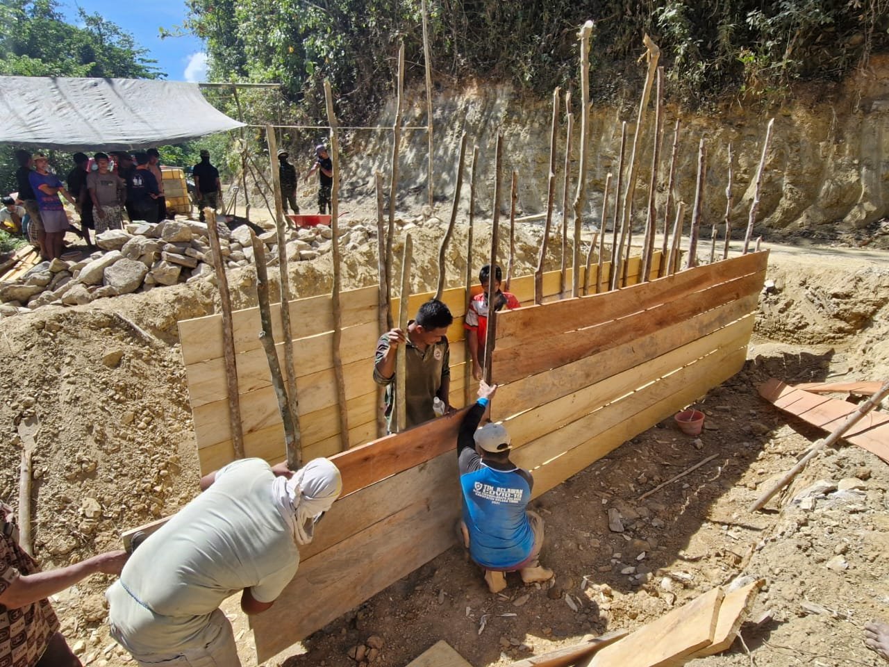 Warga Desa Liku terlihat kompak bergotong royong, mulai dari menyiapkan bahan bangunan hingga membantu tenaga dalam pemasangan papan mal. Kehadiran Satgas TMMD tidak hanya membawa pembangunan fisik, tetapi juga menumbuhkan rasa kebersamaan dan tanggung jawab bersama terhadap kemajuan desa.