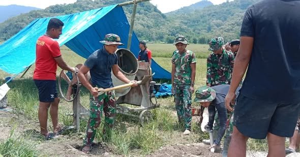 Ngada, 1 November 2025 – Satuan Tugas TNI Manunggal Membangun Desa (TMMD) ke-126 Kodim 1625/Ngada terus melanjutkan pekerjaan fisik di wilayah. Kali ini, kegiatan difokuskan pada pengecoran lantai saluran irigasi Lewur Tepu yang berlokasi di Desa Benteng Tawa, Kecamatan Riung Barat, Kabupaten Ngada. Hingga saat ini, progres pembangunan telah mencapai 90 persen.