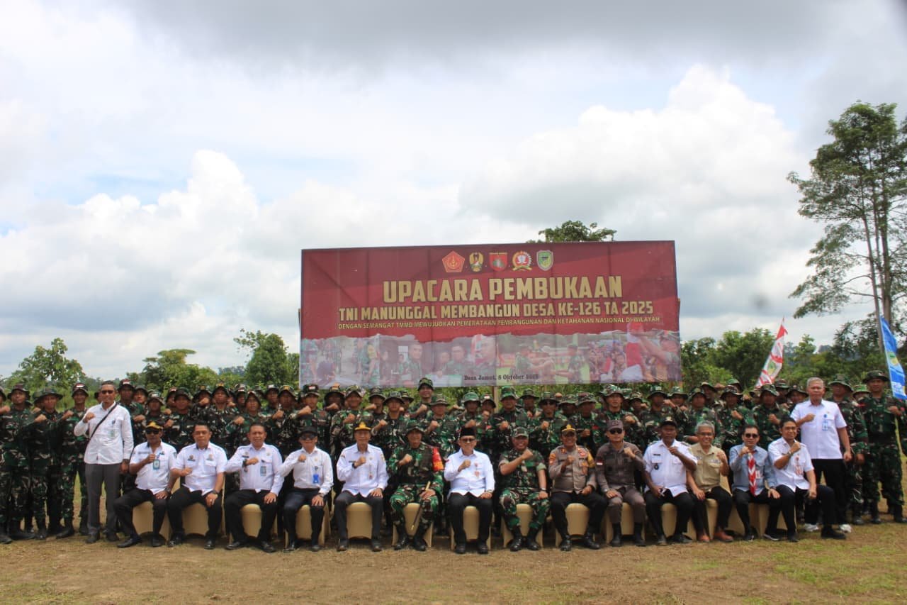 Desa Jamut Kec. Teweh Timur, Kab.Barito Utara— Kodim 1013/Muara Teweh Kembali menggelar Kegiatan TNI Manunggal Membangun Desa TMMD Reguler ke-126 Tahun 2025 yang secara resmi dibuka oleh Pj. Bupati Barito Utara Indra Gunawan SE., MPA, pada hari Rabu 08 Oktober 2025.