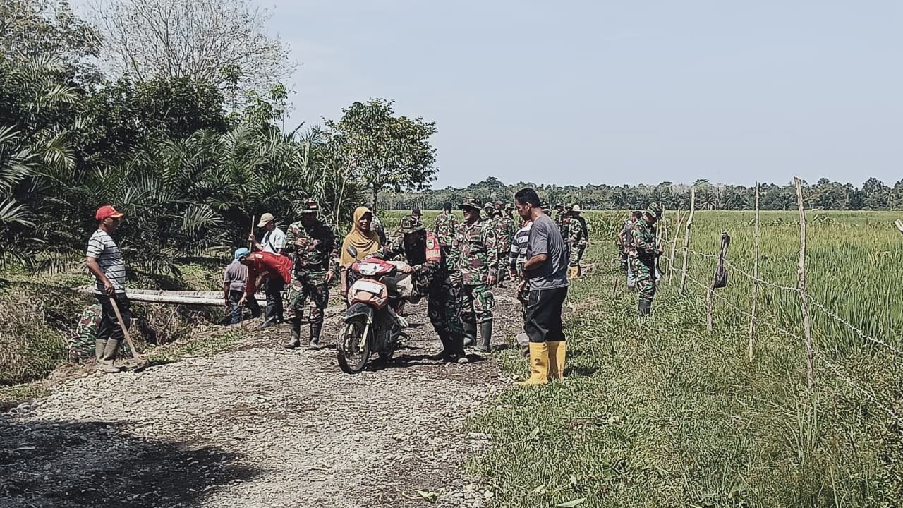 Aceh Barat – Di Desa Pasi Aceh, kebersamaan tumbuh seperti padi di sawah. Personel Satgas TMMD Reguler ke-127 Kodim 0105/Abar bekerja berdampingan dengan warga, menata jalan yang menjadi urat nadi pertanian, Senin (2/3/2026).