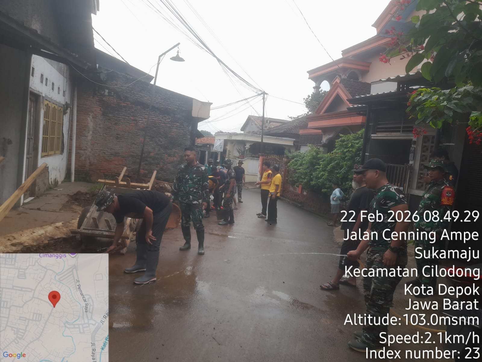 Depok – Kegiatan TNI Manunggal Membangun Desa (TMMD) ke-127 yang dilaksanakan oleh Kodim 0508/Depok tidak hanya menyasar pembangunan fisik, tetapi juga aksi sosial kemasyarakatan. Salah satunya melalui kegiatan karya bhakti berupa pembersihan area Mushallah Ar Rahman yang berlokasi di Jalan GDC Sektor Gardenia, Kelurahan Tirtajaya, Kecamatan Sukmajaya, Kota Depok.