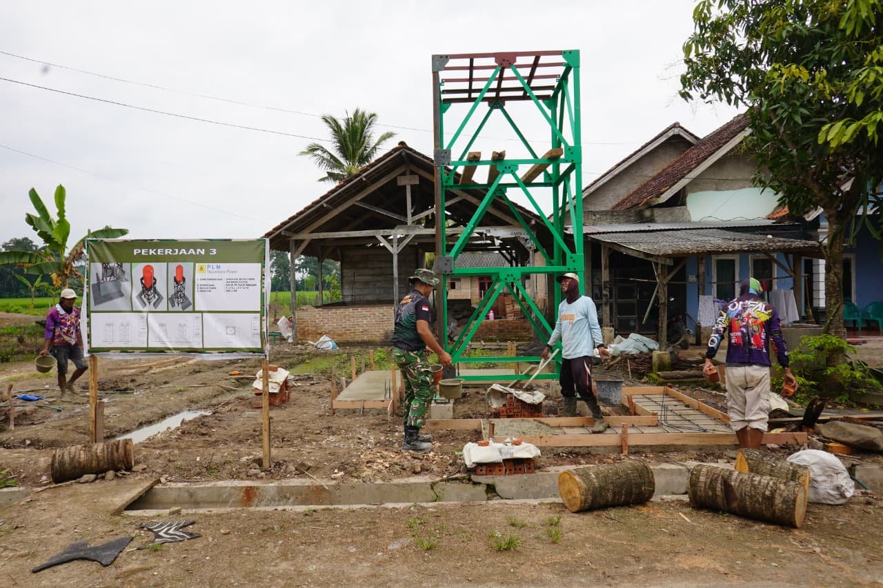 Pesawaran — Pembangunan sarana air bersih dalam program TMMD ke-127 oleh Kodim 0421/Lampung Selatan terus berlanjut di Desa Tanjung Rejo. Pada titik sumur bor atas nama Bapak Triyono, Satgas melaksanakan pemasangan tiang tower sebagai penopang tandon air.