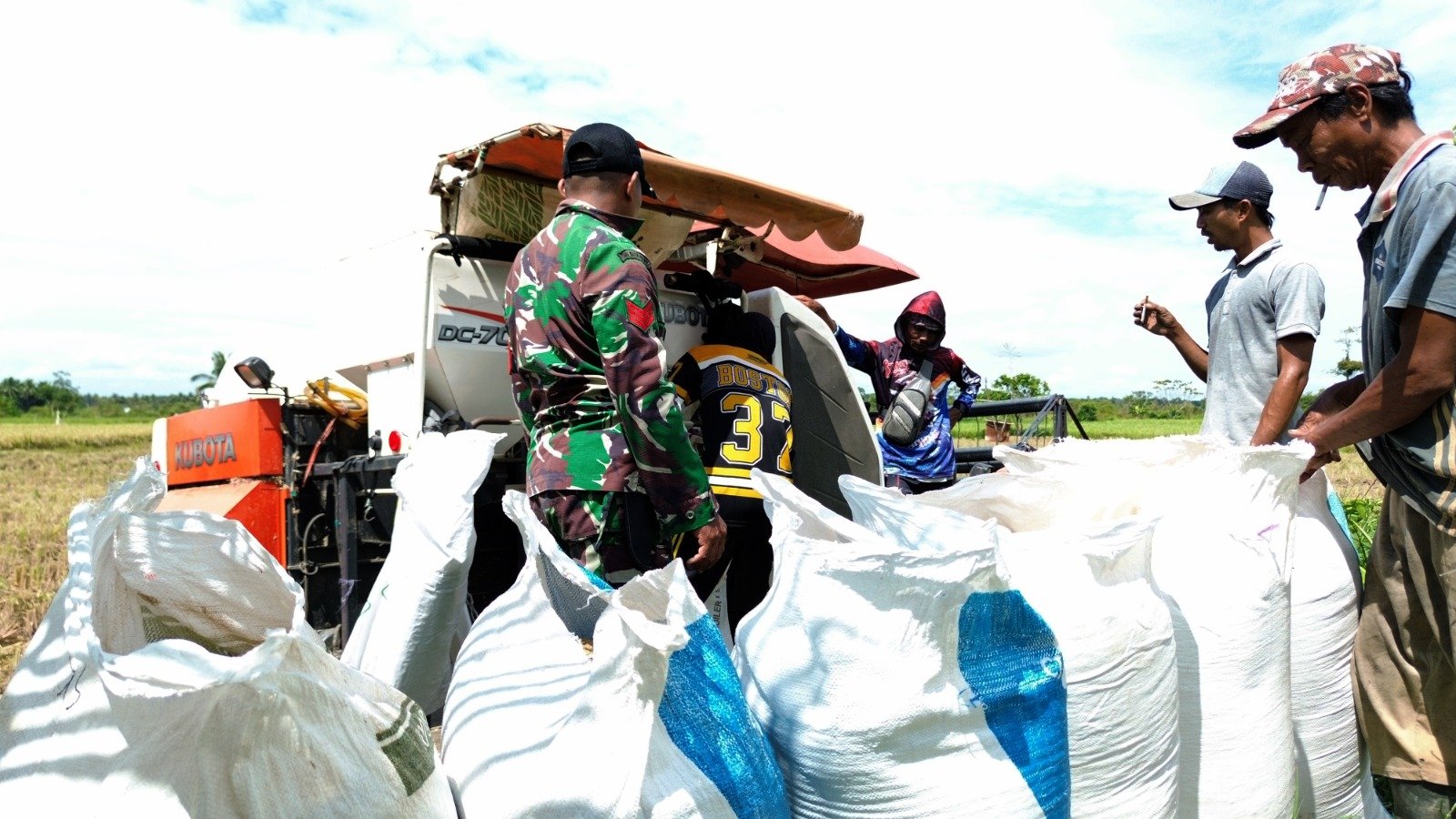 Kolaborasi tersebut terlihat jelas saat proses panen. Selain personel TNI, hadir juga perangkat desa dan kelompok tani yang bersama-sama memastikan proses panen dengan combine harvester berjalan lancar. Momen ini sekaligus dimanfaatkan Babinsa untuk bersilaturahmi, menyerap aspirasi petani, dan memperkuat kedekatan TNI dengan rakyat.