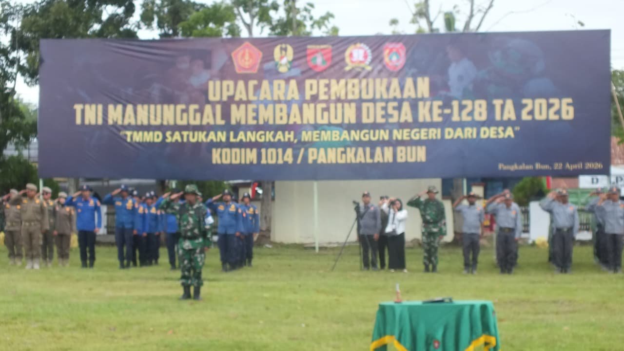 Pangkalan Banteng – Program TNI Manunggal Membangun Desa (TMMD) Ke-128 Kodim 1014/Pangkalan Bun resmi dimulai, ditandai dengan pelaksanaan upacara pembukaan di Kecamatan Pangkalan Banteng, Kabupaten Kotawaringin Barat, Rabu (22/4/2026).