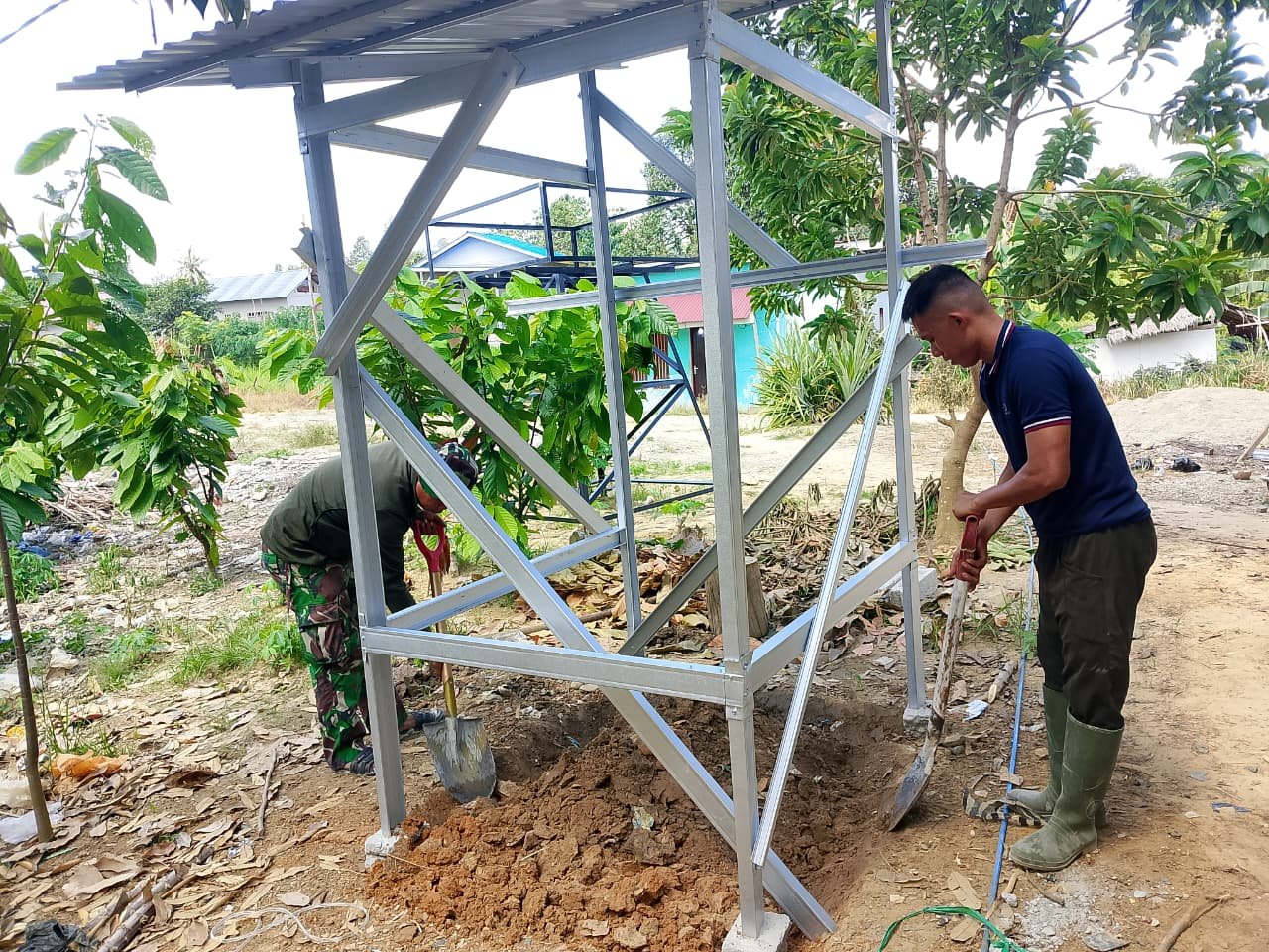 Kegiatan ini melibatkan kerja sama antara anggota Satgas dan masyarakat yang terlihat aktif dalam pemasangan rangka serta penutup atap. Ini merupakan langkah krusial untuk pembangunan fasilitas sanitasi yang layak bagi warga sekitar.