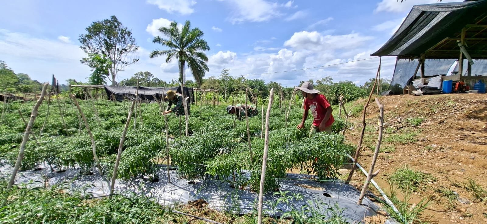 Kebun tersebut memiliki luas sekitar lima hektar dan ditanami berbagai komoditas seperti jagung, cabai merah dan semangka. Lahan tersebut digarap bersama oleh personel Satgas TMMD dan masyarakat setempat sejak awal pelaksanaan program.