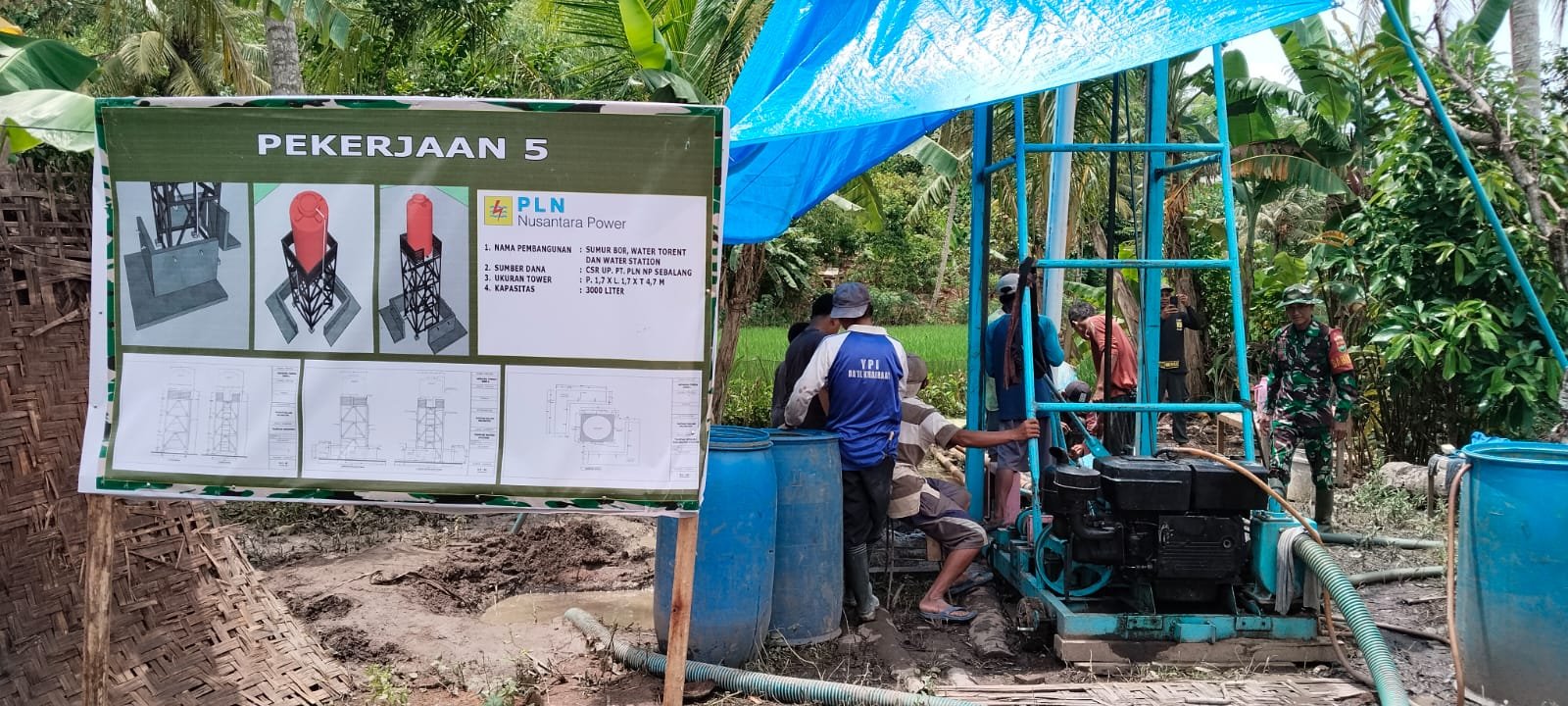 Pesawaran — Satgas TNI Manunggal Membangun Desa (TMMD) ke-127 yang dilaksanakan oleh Kodim 0421/Lampung Selatan terus memacu progres pembangunan sarana air bersih di wilayah sasaran. Kali ini, pengerjaan sumur bor di Desa Kota Jawa, Kabupaten Pesawaran, telah memasuki tahap pengeboran hingga kedalaman 50 meter atas nama penerima manfaat Bapak Yansuryani.