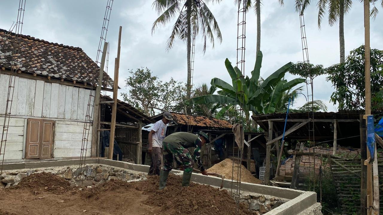 Kali ini, rehab Rumah Tidak Layak Huni (RTLH) milik Bapak Suhono telah memasuki tahap pemasangan batu bata serta kusen pintu dan jendela. Personel Satgas TMMD bersama masyarakat setempat bergotong royong mengerjakan pembangunan agar rumah segera layak ditempati.
