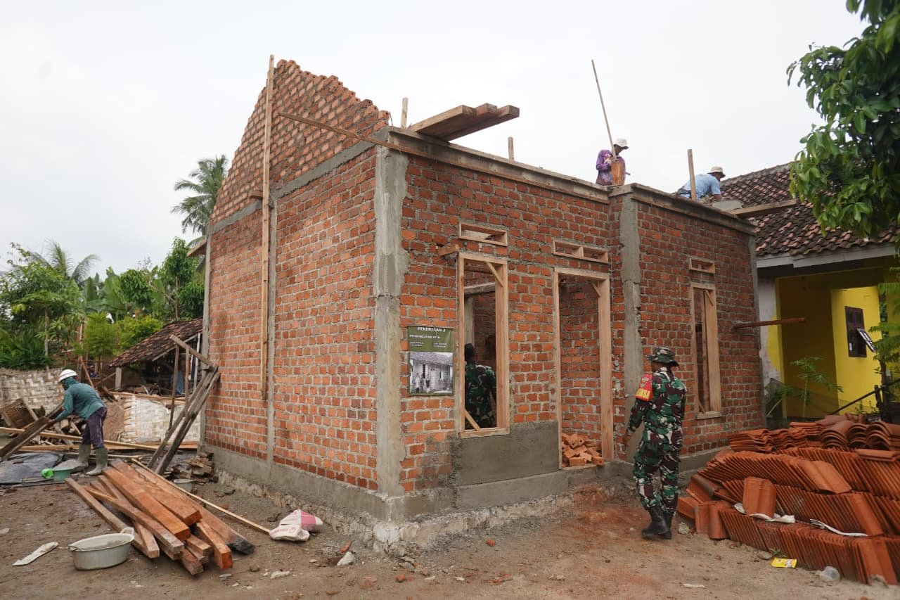 Rehab Rumah Tidak Layak Huni (RTLH) milik Bapak Suhono kini memasuki tahap pemasangan segitiga atas sebagai bagian dari struktur rangka bangunan sebelum dilanjutkan ke proses berikutnya. Personel Satgas TMMD bersama masyarakat setempat bergotong royong mempercepat pengerjaan agar rumah segera layak ditempati.