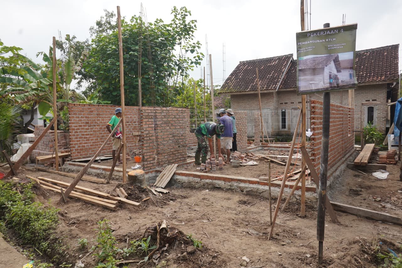 Pesawaran — Program TNI Manunggal Membangun Desa (TMMD) yang dilaksanakan oleh Kodim 0421/Lampung Selatan terus menunjukkan progres positif. Rehab Rumah Tidak Layak Huni (RTLH) milik Bpk Ngadino di Desa Tanjung Rejo, Kecamatan Way Khilau, Kabupaten Pesawaran kini memasuki tahap pemasangan batu bata merah.
