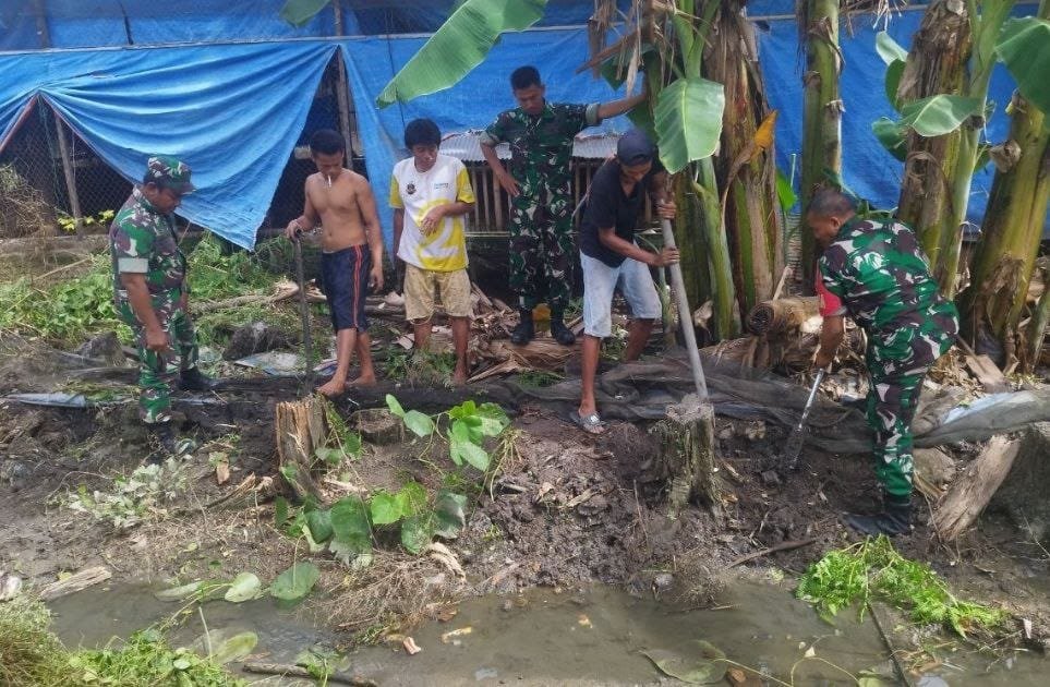 Secara gotong royong, anggota Koramil bersama-sama warga membersihkan material penyumbat selokan dan mengangkut sampah hingga tuntas. Kegiatan yang dimulai sejak pagi hari ini berlangsung dengan lancar dan aman, serta berhasil diselesaikan.