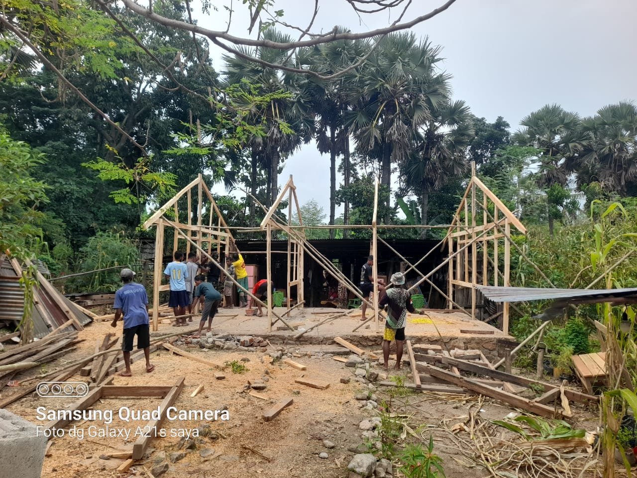 NTT – KEFAMENANU, Jumat (07/03/2025)., Personel Satgas TMMD Ke-123 Kodim 1618/TTU terus berkomitmen untuk meningkatkan kesejahteraan masyarakat. Kali ini, mereka bergerak membangun Rumah Tidak Layak Huni (RTLH) di Dusun 3, Desa Lanaus, Kecamatan Insana Tengah, Kabupaten TTU. Saat ini, pembangunan telah memasuki tahap pemasangan kerangka rumah, yang menjadi fondasi utama sebelum penyelesaian lebih lanjut.