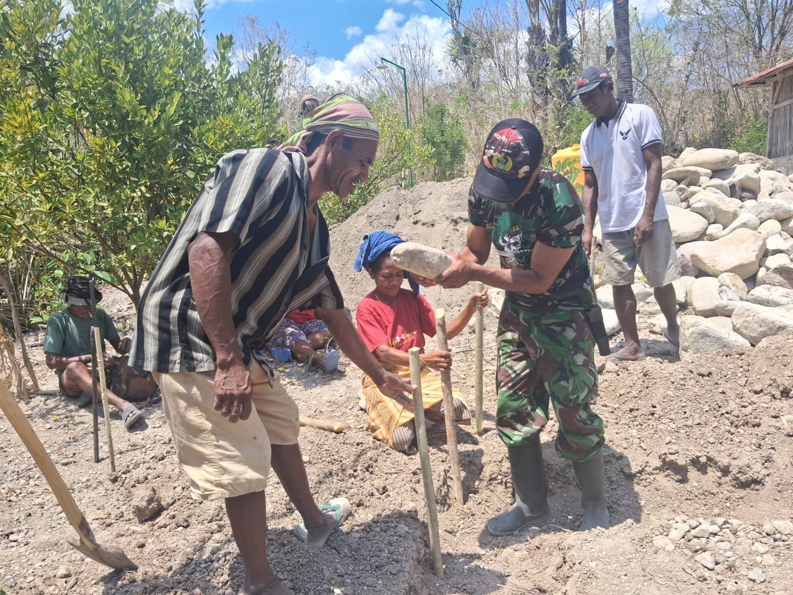 Kegiatan yang dimulai sejak pukul 08.00 WITA tersebut dipimpin oleh Serka Lukas Liu dan Sertu Desemblora Mauboy. Kedua Babinsa ini menggerakkan sekitar 20 warga bersama perangkat desa untuk bergotong royong menggali fondasi, menyiapkan lokasi pembangunan bak penampungan air (Resofer) yang nantinya akan menjadi sumber pasokan air bagi masyarakat setempat.