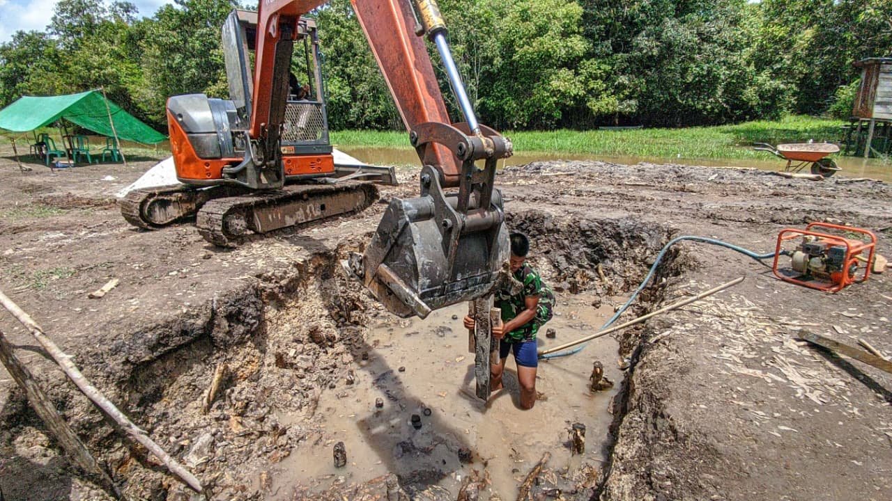 Selain pengerjaan manual, pembangunan juga didukung dengan pengerahan alat berat yang difungsikan untuk menggali pondasi jembatan. Kehadiran alat berat tersebut mempercepat proses pekerjaan sekaligus memastikan kedalaman dan kekuatan pondasi sesuai dengan standar yang dibutuhkan.