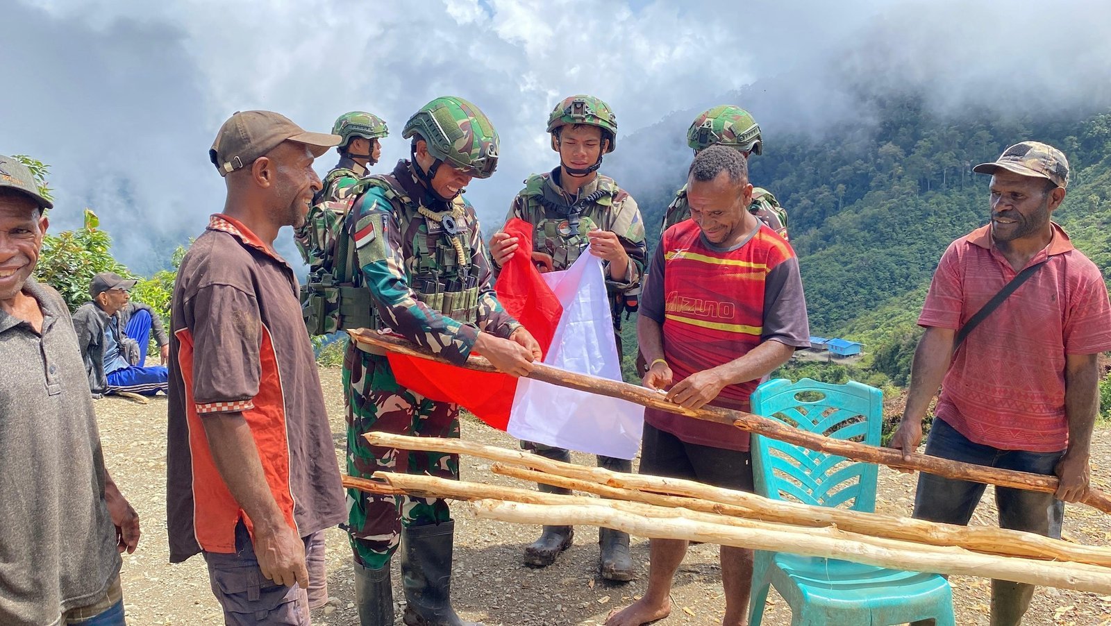 Anak-anak Papua tampak berlarian riang membawa bendera kecil, sementara orang tua mereka sibuk menancapkan tiang bendera di depan rumah. Senyum dan tawa mengiringi setiap helai merah putih yang berkibar gagah di angin pegunungan.