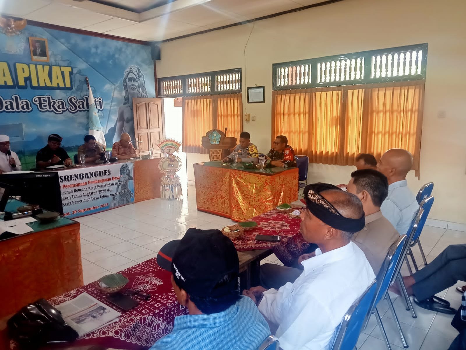 Klungkung,- Berlangsungnya kegiatan Musdes perubahan ke II RAPBDes RKP dan Musyawarah Perencanaan Pembangunan Desa ( Musrenbangdes ) yang digelar Pemdes Pikat pada Senin ( 29/09/25 ) tak luput dari pendampingan Babinsa Pikat Serda Nengah Anom.