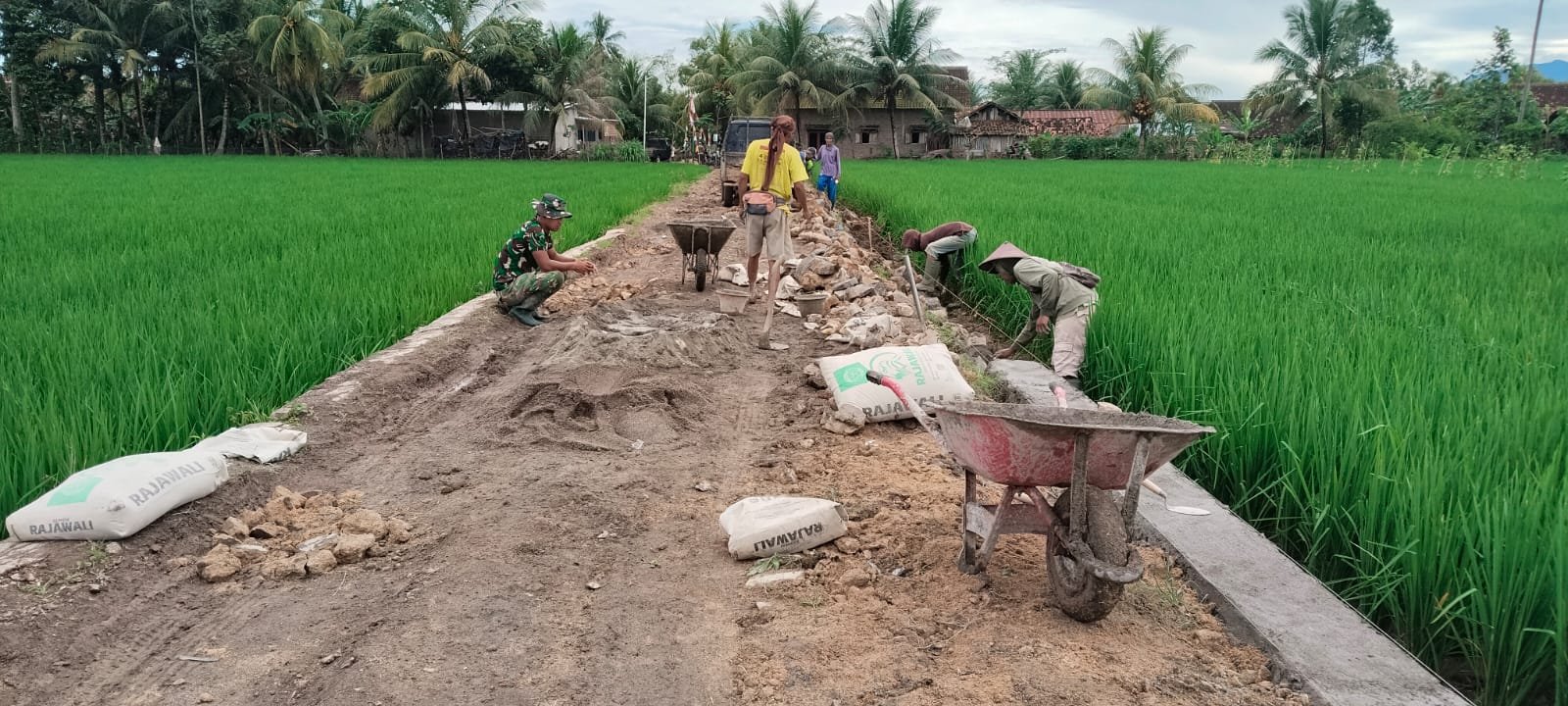 Pesawaran — Semangat kebersamaan begitu terasa dalam pembangunan talud pada program TMMD ke-127 yang dilaksanakan Kodim 0421/Lampung Selatan di Desa Tanjung Rejo. Antusiasme warga terlihat tinggi, bahu-membahu bersama personel TNI menyusun batu dan meracik adukan semen demi memperkuat struktur penahan tanah.