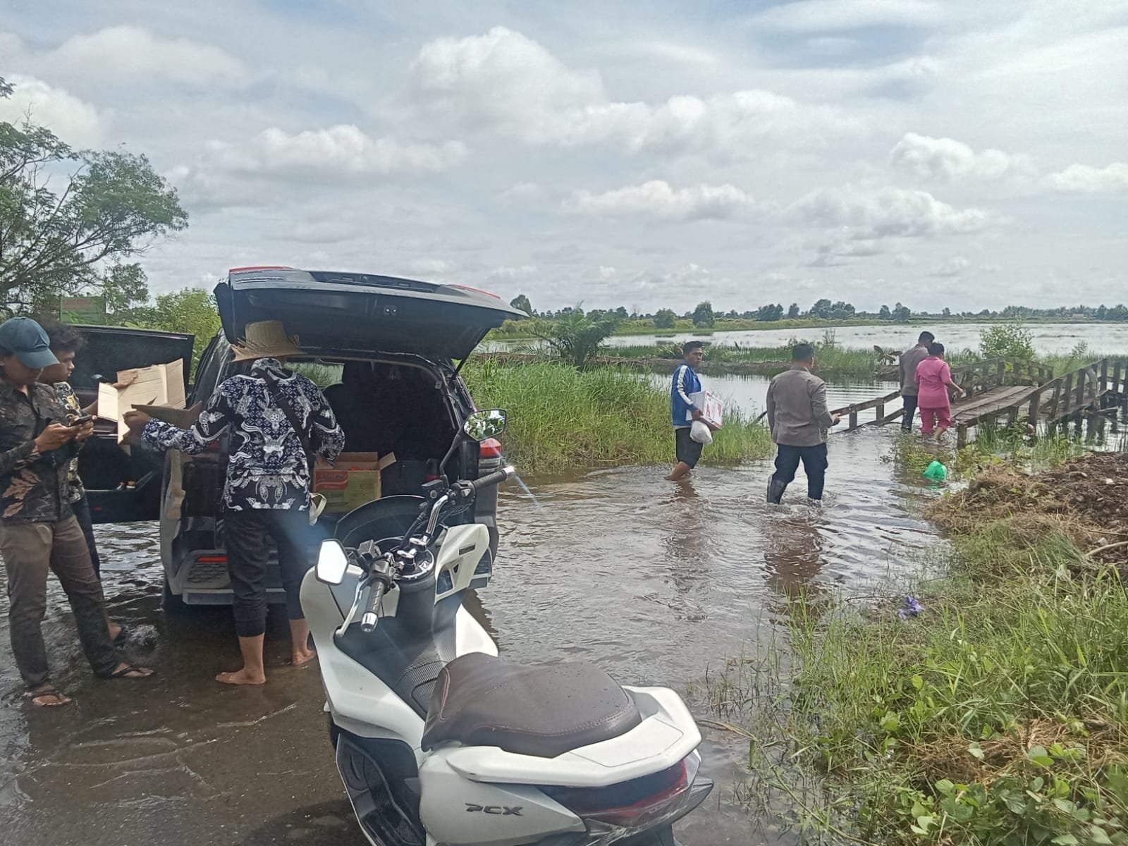 Paket sembako yang dibagikan berisi kebutuhan pokok seperti beras, minyak goreng, mie instan, dan air mineral. Bantuan tersebut disalurkan langsung kepada warga yang terdampak banjir, baik yang berada di lokasi pengungsian maupun yang masih bertahan di rumah masing-masing. Proses distribusi dilakukan dengan tertib dan penuh kehati-hatian, mengingat kondisi medan yang cukup menantang.