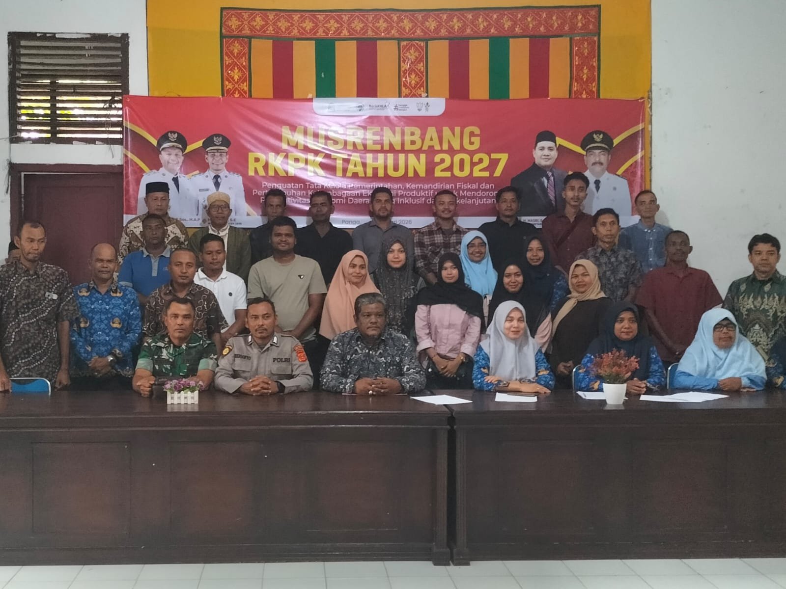 ACEH JAYA – Musyawarah Rencana Pembangunan (Musrenbang) tingkat Kecamatan Panga untuk Rencana Kerja Pemerintah Kabupaten (RKPK) Tahun Anggaran 2027 digelar di Aula Kantor Camat Panga, Desa Kuta Tuha, Kamis (26/02/2026) pukul 14.00 WIB. Kegiatan ini mengangkat tema “Penguatan tata kelola pemerintahan, kemandirian fiskal dan pertumbuhan kelembagaan ekonomi untuk mendorong produktivitas ekonomi daerah yang inklusif dan berkelanjutan.”