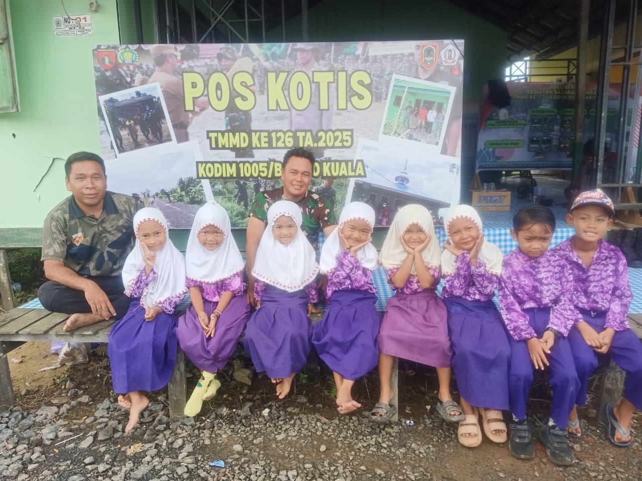 Komandan Satuan Setingkat Kompi (Dan SSK) TMMD Ke-126 Kodim 1005/Barito Kuala, Kapten Inf Tri Hendro, menyampaikan bahwa kehadiran anak-anak menjadi penyemangat tersendiri bagi anggota Satgas.