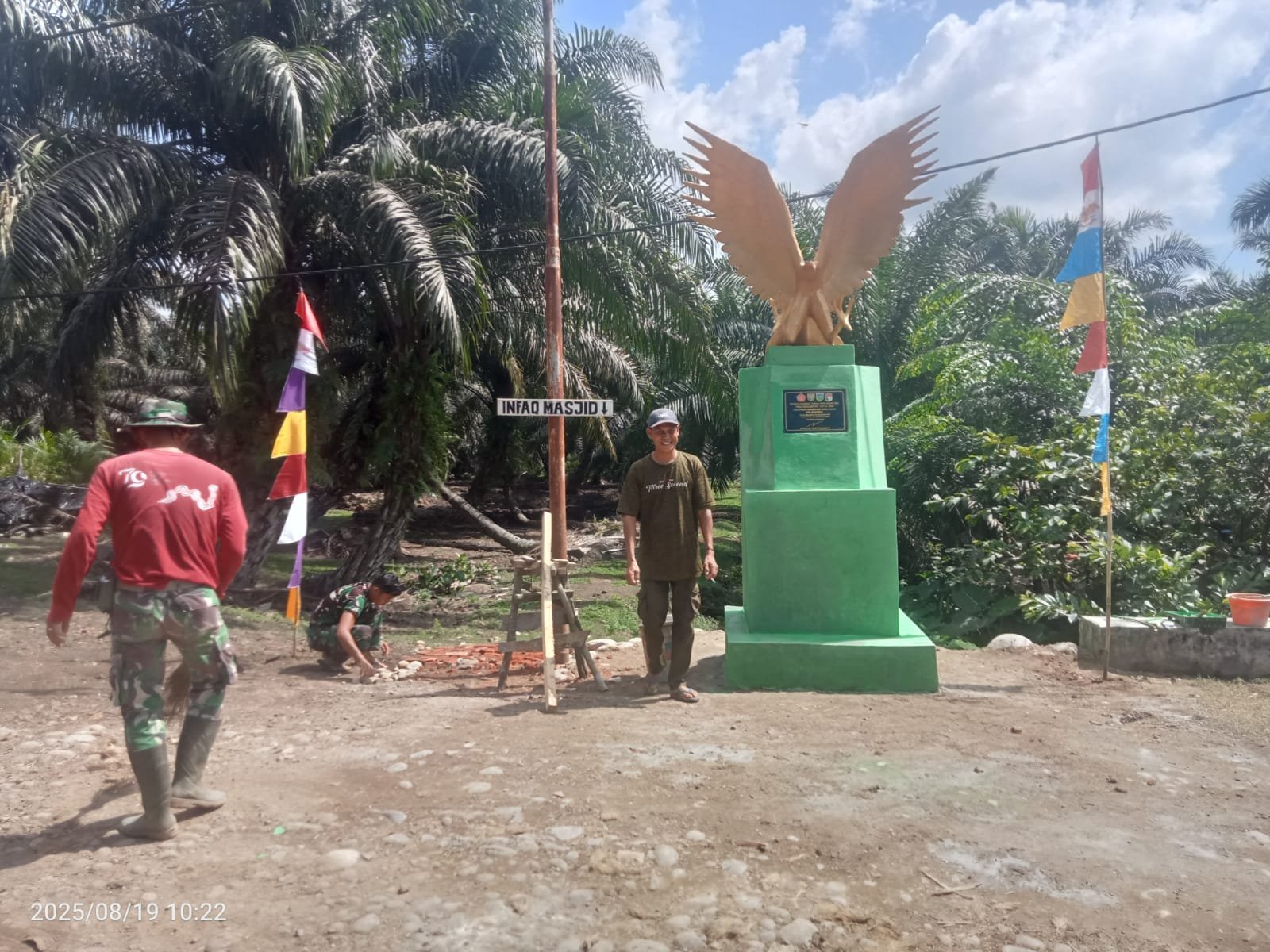 Mukomuko – Proses pembangunan Tugu TMMD di Desa Wonosalam, Kecamatan Lubuk Pinang, Kabupaten Mukomuko, resmi rampung 100 persen pada Rabu (20/08/2025). Di hari ke-29 pelaksanaan TMMD Reguler ke-125, tugu tersebut telah berdiri kokoh setelah melalui tahap finishing.
