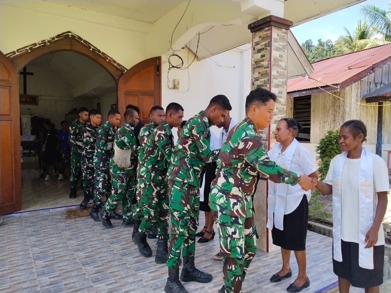 Manokwari, Papua Barat — Setelah menghadiri kebaktian Minggu bersama masyarakat, anggota Satgas TMMD ke-128 Kodim 1801/Manokwari tidak menunggu lama untuk kembali melanjutkan pekerjaan di lokasi sasaran fisik dengan antusiasme yang meningkat.