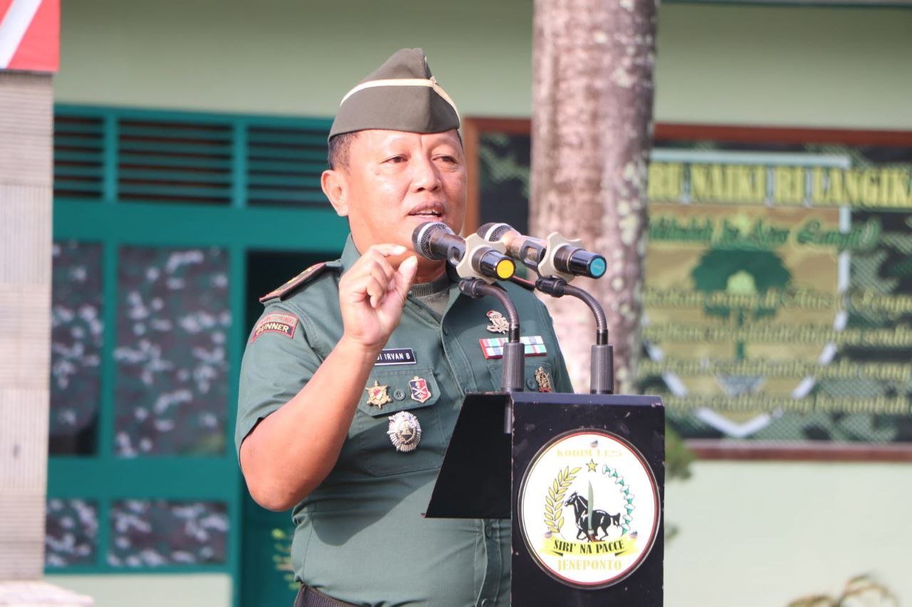 JENEPONTO – Komando Distrik Militer (Kodim) 1425/Jeneponto, menggelar kegiatan upacara bendera rutin hari Senin, dipimpin Ws. Kasdim 1425/Jeneponto, Mayor Arm Andi Irvan Bahtiar selaku inspektur upacara, berlangsung di Lapangan upacara Makodim, Kabupaten Jeneponto. Senin, 10/02/2025.