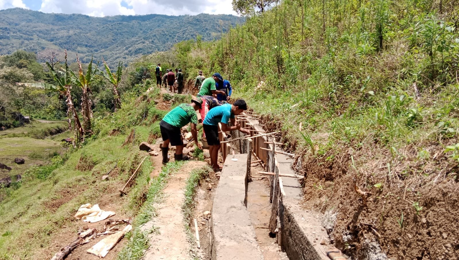 Perbaikan irigasi yang dikerjakan bersama personel TNI di bawah pimpinan Sertu Sipranus Magung mendapat sambutan hangat dari masyarakat. Pasalnya, kerusakan pada saluran tersebut selama ini menjadi kendala utama bagi para petani dalam mengairi lahan pertanian mereka.