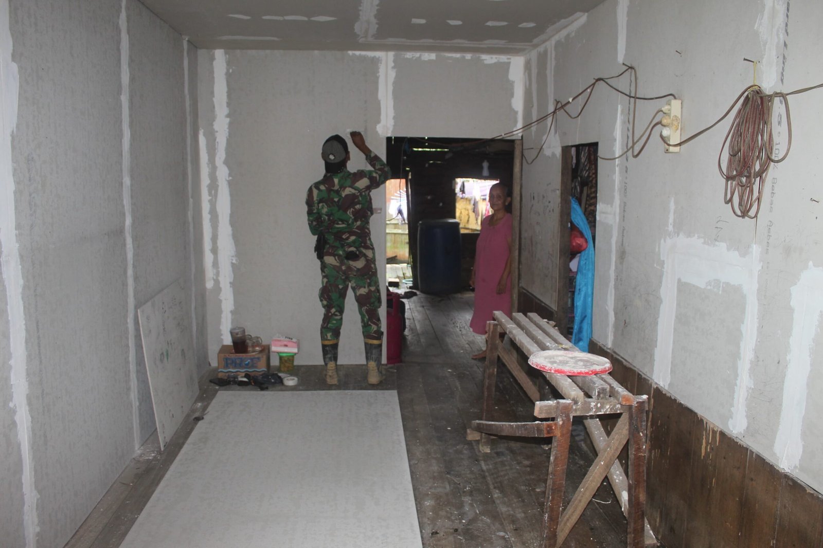 Bapak Suryadi, salah satu pemilik rumah yang sedang direhabilitasi, menyampaikan terima kasihnya kepada anggota TNI yang bekerja keras membantu memperbaiki rumahnya menjadi layak huni.