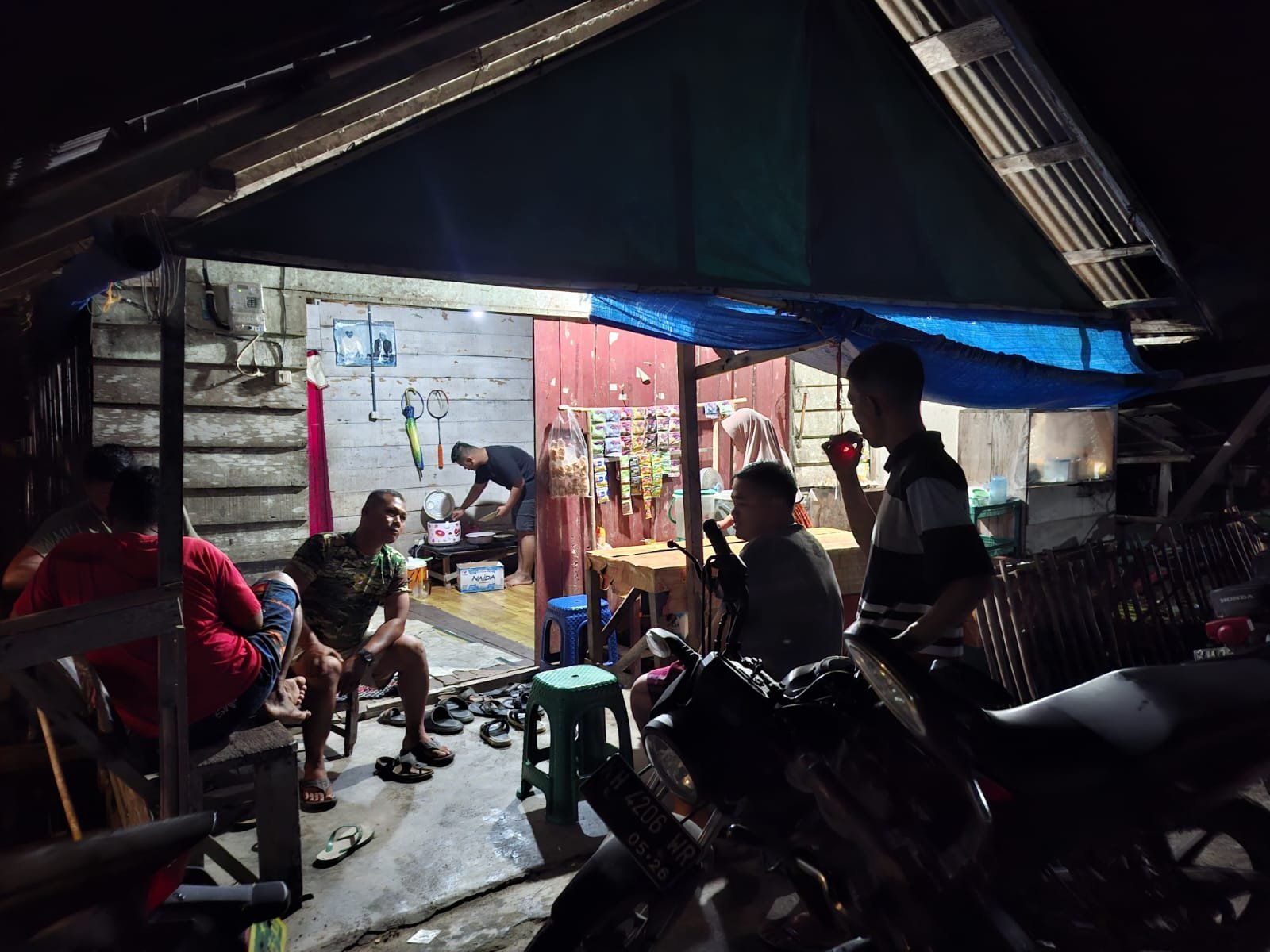 Salah satu warung warga yang menjual jajanan ringan minuman dan gorengan setiap harinya selalu di gunakan sebagai tempat komunikasi dan istirahat bagi anggota satgas TMMD Kodim 1014/Pbn yang lagi mengerjakan Sasaran Fisik adalah milik Bapak Junaidi.