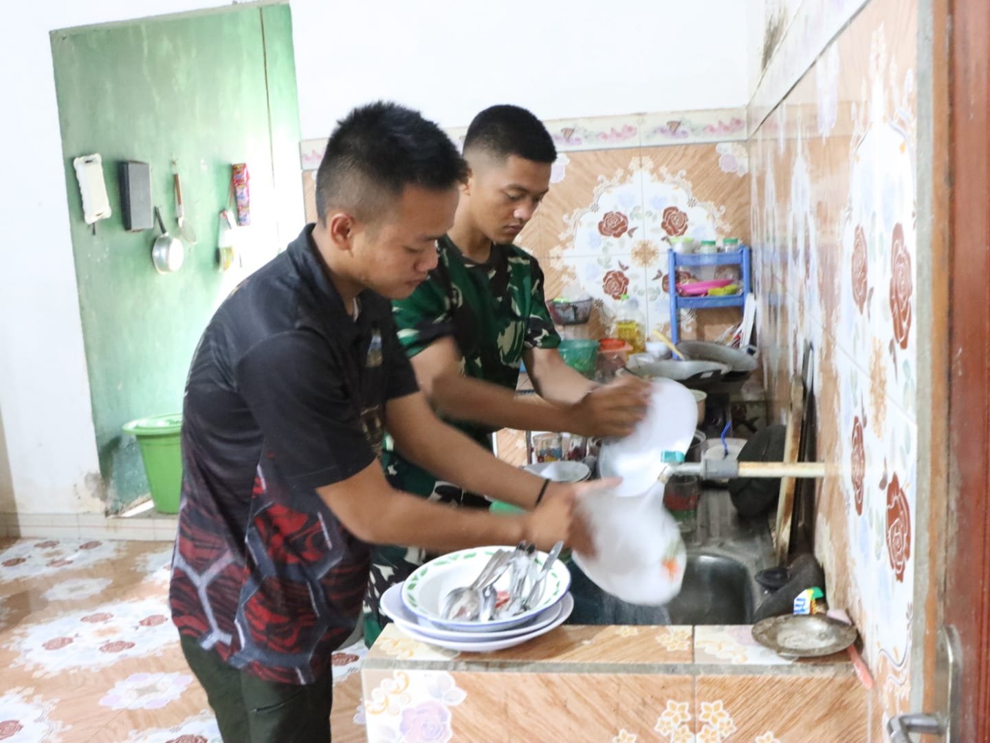 Wujud Kedekatan, Satgas TMMD 127 Bantu Tuan Rumah Cuci Piring