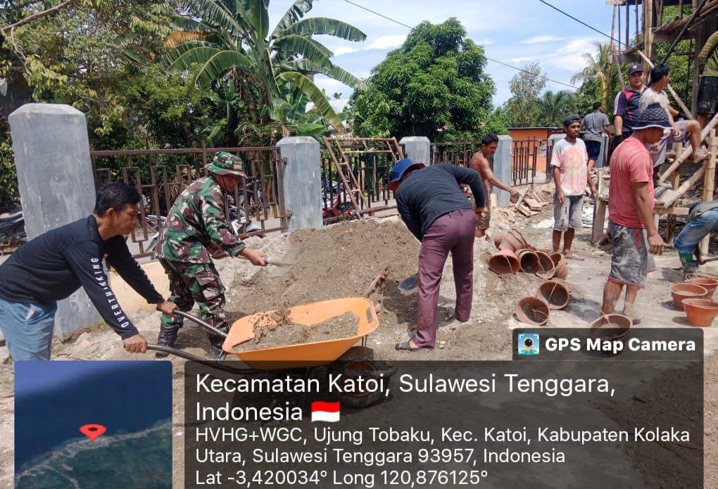 Kegiatan tersebut dilaksanakan di Desa Tobaku, Kecamatan Katoi, Kabupaten Kolaka Utara. Kerja bakti ini merupakan bentuk kepedulian TNI terhadap sarana ibadah serta wujud nyata kemanunggalan TNI dengan rakyat.