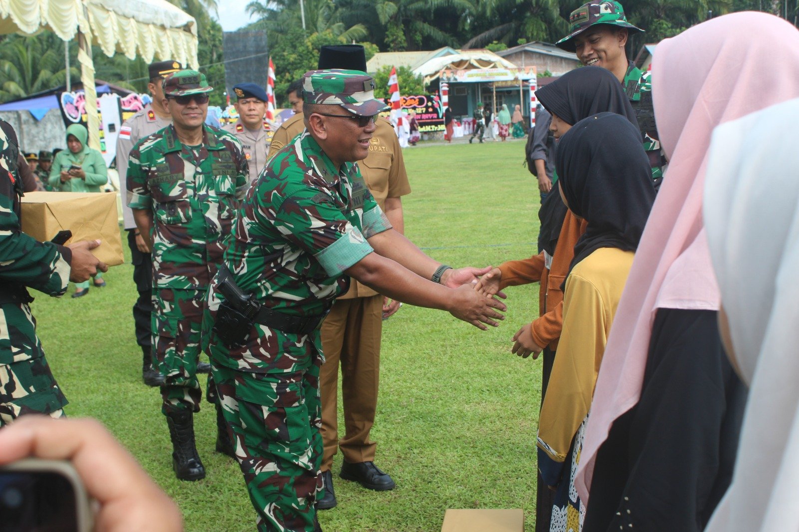Kegiatan tersebut berlangsung dengan penuh kehangatan dan menjadi salah satu momen penting dalam penutupan program TMMD yang telah dilaksanakan selama satu bulan di wilayah Kabupaten Nagan Raya. Bantuan sembako diserahkan secara simbolis kepada masyarakat yang membutuhkan sebagai bentuk kepedulian sosial sekaligus wujud nyata kemanunggalan TNI dengan rakyat.