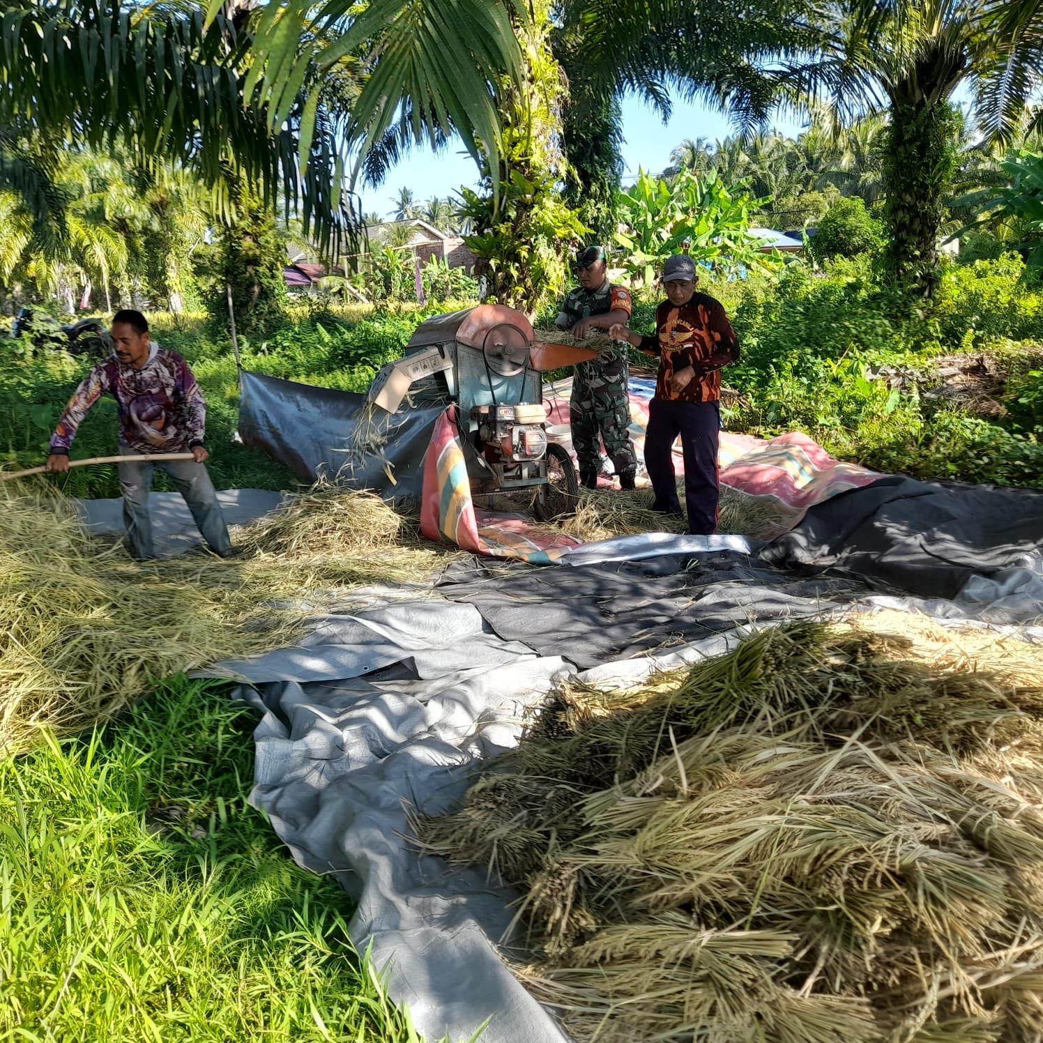 Babinsa terlihat aktif membantu menggunakan alat perontok padi yang dimiliki warga. Dengan semangat gotong royong, ia bersama petani setempat menyelesaikan pekerjaan dengan cepat dan efisien. Kehadiran Babinsa tidak hanya meringankan beban para petani, tetapi juga memberikan motivasi untuk meningkatkan hasil pertanian di masa depan.