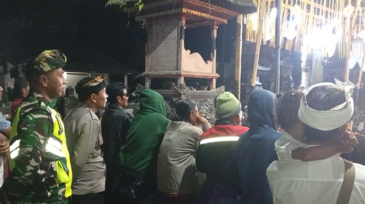 Pengamanan dilakukan secara terpadu bersama unsur Bhabinkamtibmas dan Pecalang guna mengantisipasi potensi gangguan kamtibmas, mengatur arus keluar-masuk penonton, serta memastikan seluruh rangkaian kegiatan adat dan hiburan rakyat berjalan tertib, aman, dan lancar.