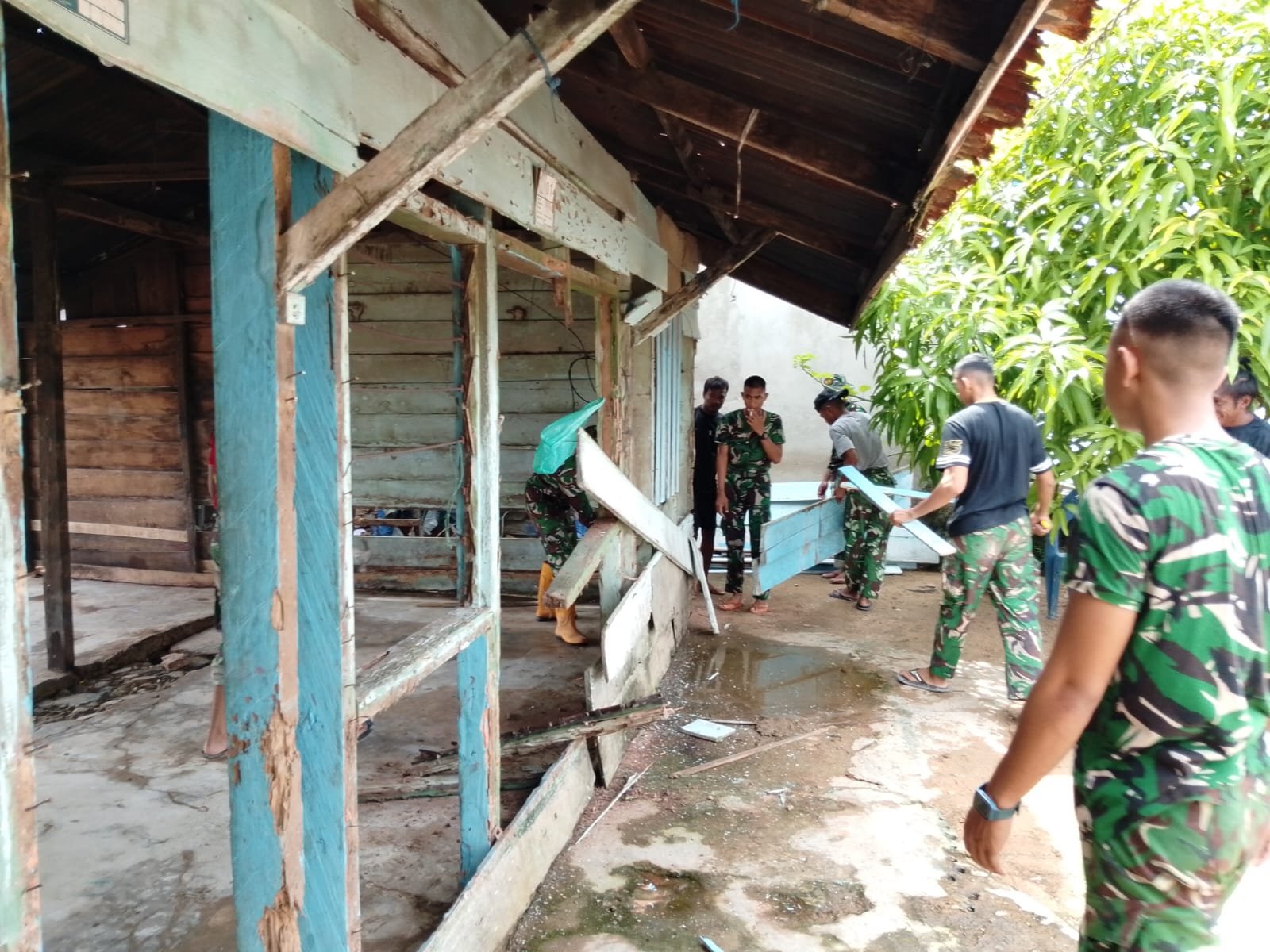 Kendari – Satgas TNI Manunggal Membangun Desa (TMMD) ke-127 Kodim 1417/Kendari mulai merealisasikan program sosial dengan melakukan pembongkaran Rumah Tidak Layak Huni (RTLH) milik Ibu Natia, seorang nelayan di Kelurahan Petoaha, Kecamatan Nambo, Kota Kendari, Kamis (12/2).