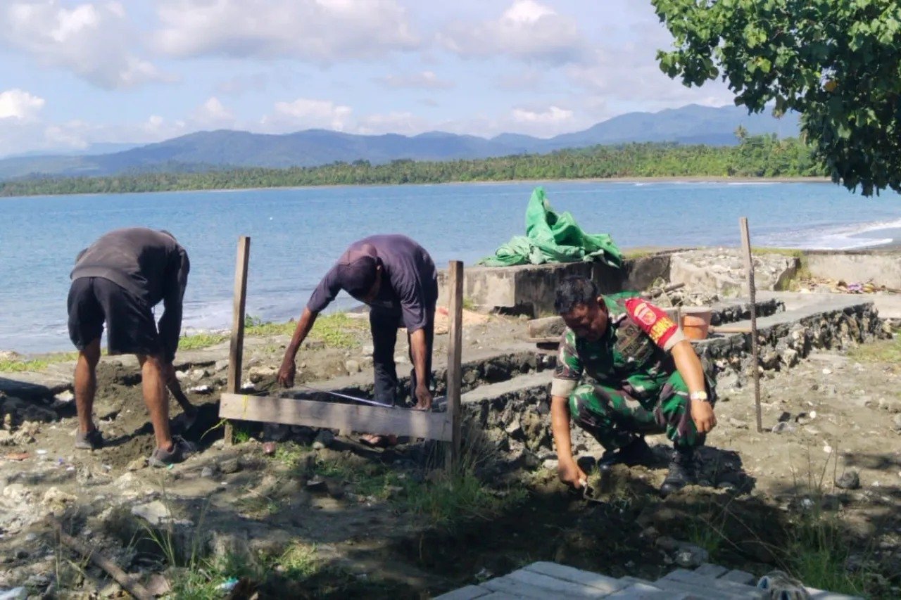 Halmahera Timur – Dalam rangka meningkatkan kebersamaan dan kepedulian terhadap warga binaannya, Babinsa Koramil 1505-03/Maba Kodim 1505/Tidore, Serka Paguna, turut membantu pembuatan pondasi WC di Desa Yawanli, Kecamatan Maba Tengah, Kabupaten Halmahera Timur, Sabtu (28/12/2024).