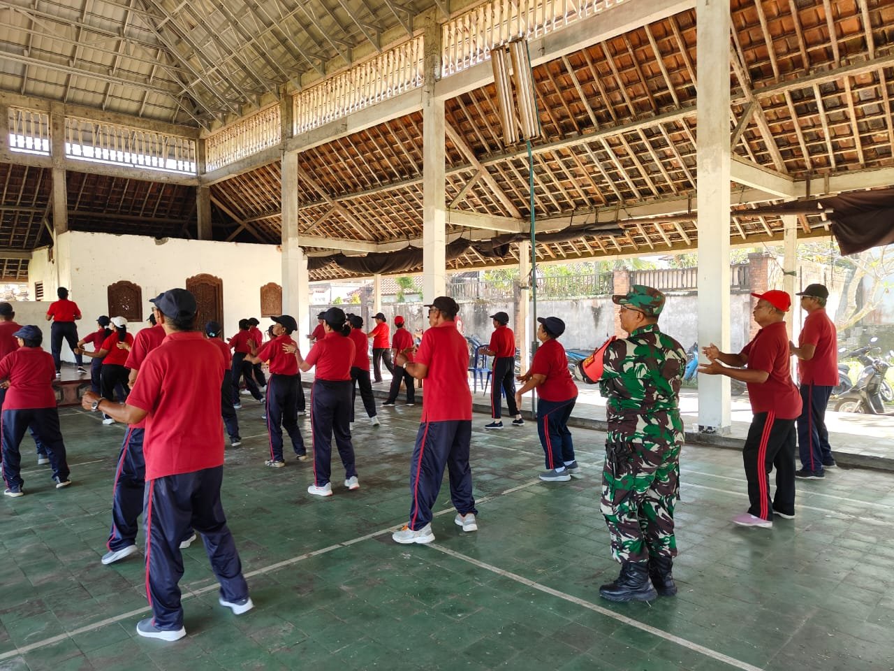 Senam bersama ini merupakan salah satu bentuk kegiatan preventif dalam menjaga kebugaran jasmani, sekaligus sebagai sarana mempererat hubungan sosial antarwarga. Dalam kesempatan tersebut, Serka Ida Bagus Ketut Nata juga turut berbaur dan berinteraksi langsung dengan masyarakat, menciptakan suasana yang hangat dan penuh kebersamaan.